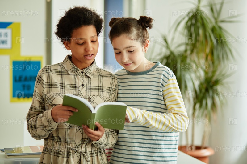 Девочки читают книги в классе