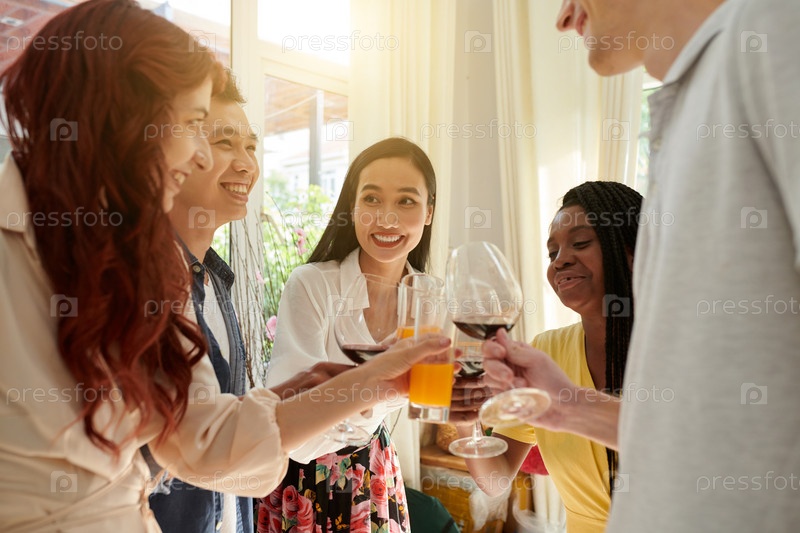 Друзья, приносящие тосты на вечеринке
