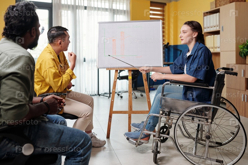 Деловая женщина с инвалидностью указывает на график