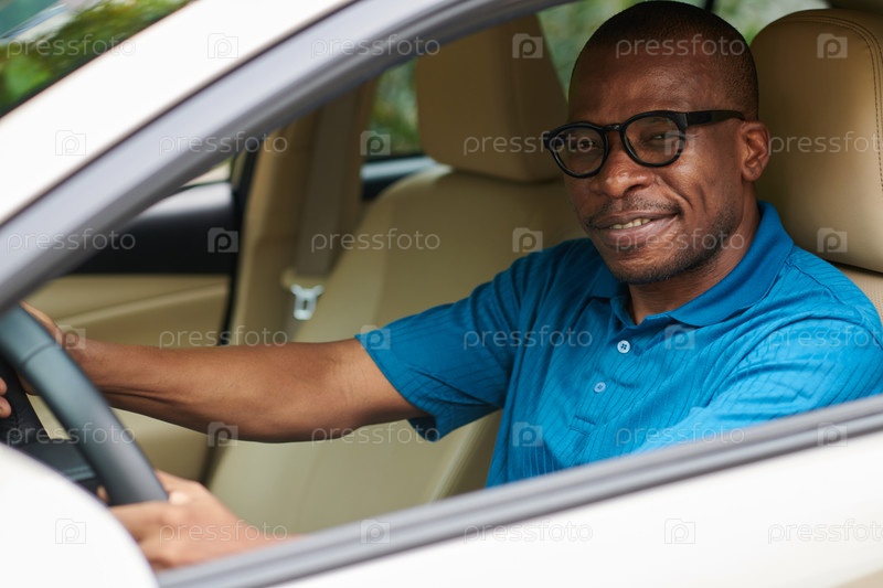 Чернокожий мужчина за рулем автомобиля Happy