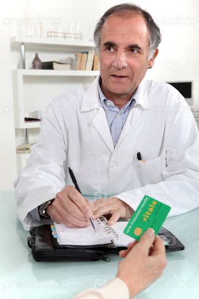 Женщина дает карту врачу