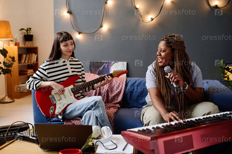 Девушки играют музыку вместе в студии