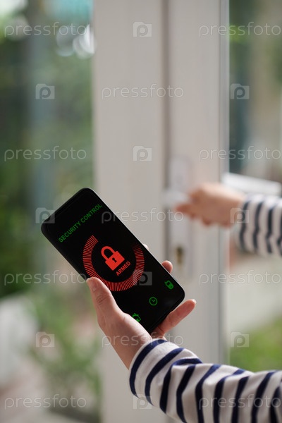 Женщина, использующая приложение управления безопасностью