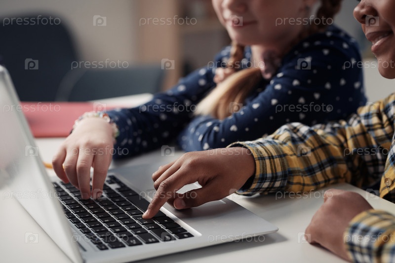 Дети, использующие ноутбук вместе за столом