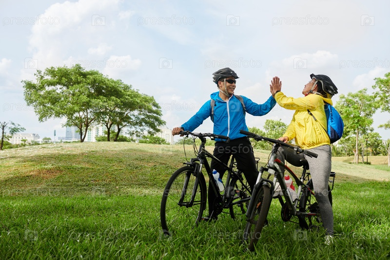 Велосипедист, дающий высокую пятерку