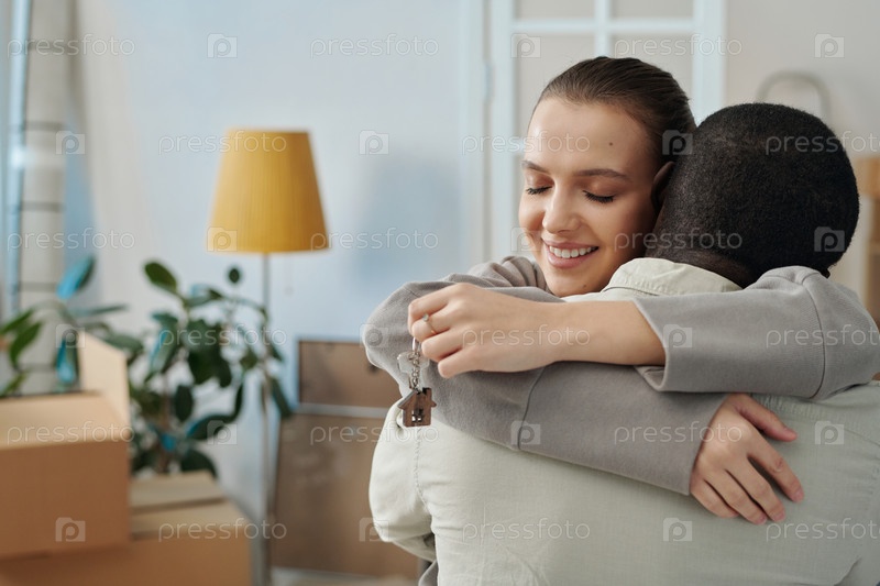Счастливая пара переезжает в свою новую квартиру