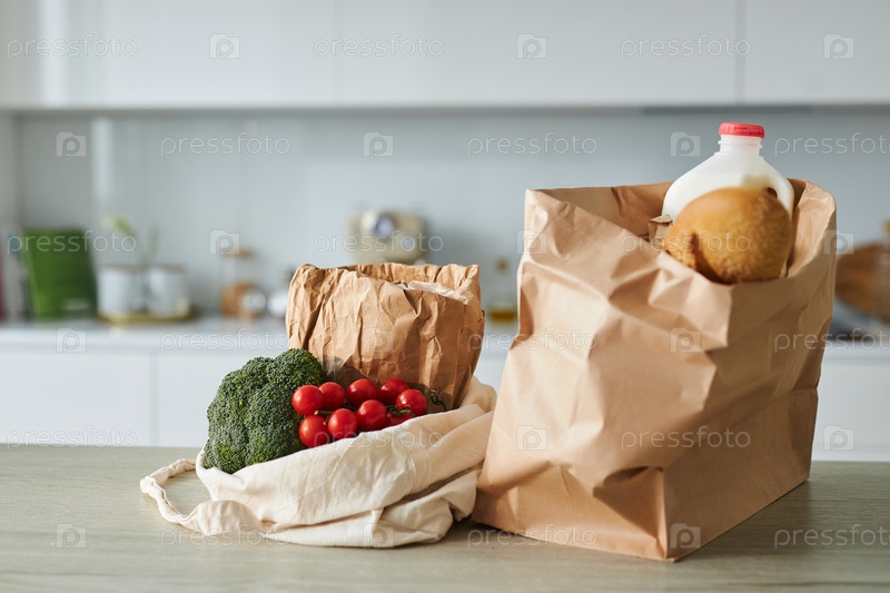 Торговые пакеты со свежими овощами