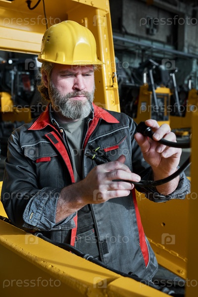 Электрик подключает провода к оборудованию