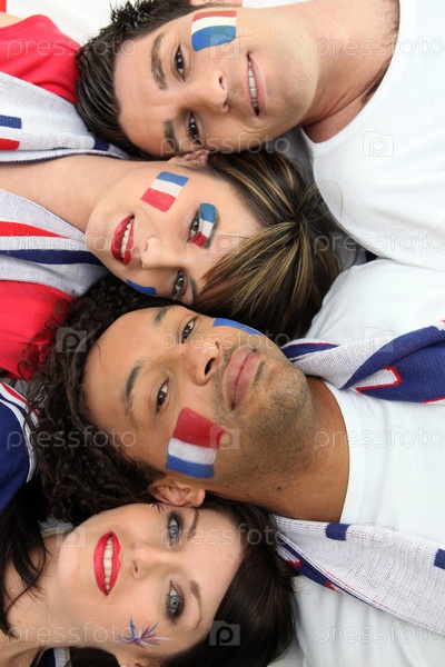 Группа друзей поддерживает сборную Франции по футболу