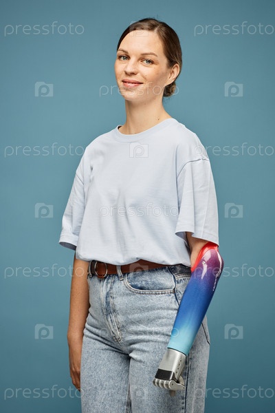 Положительная женщина с протезируемой рукой