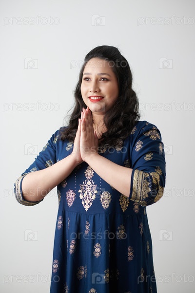 Индийская женщина делает жест Намасте