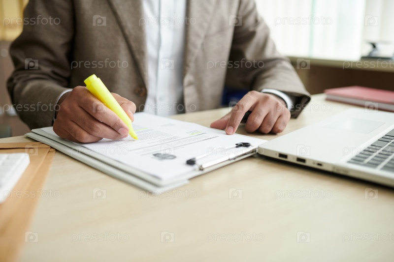 Бизнесмен подчеркивает важную информацию