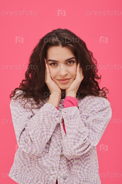 Милый портрет молодой девушки на розовом
