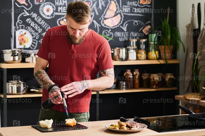 Тостинг хлеба с факелом на кухне