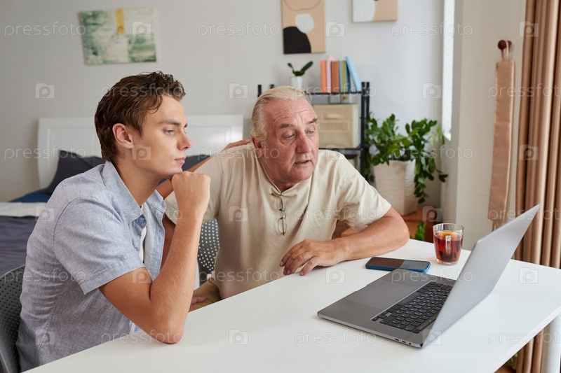 Дедушка и внук смотрят видео