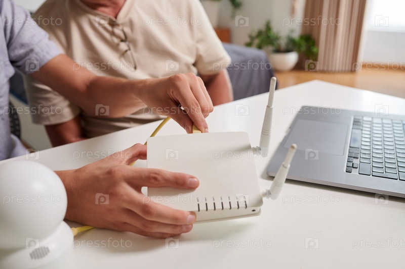 Вставка шнура в маршрутизатор Man