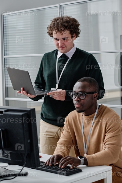 Коллеги, работающие с программным обеспечением в команде