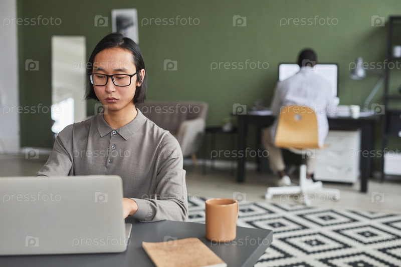Азиатский мужчина, работающий в офисе