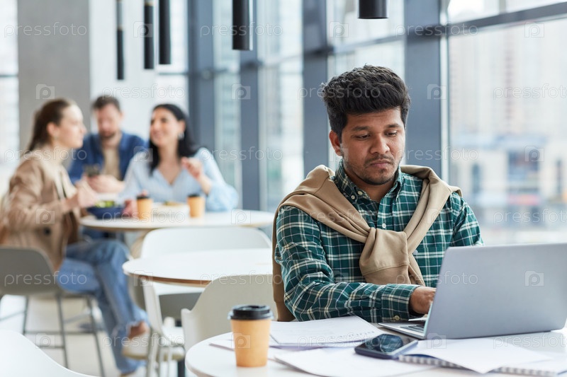 Человек, работающий удаленно за столом в кафе