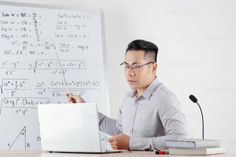 Учитель объясняет тему математики