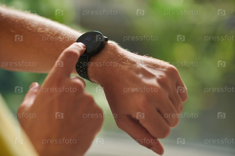 Спортсмен проверяет фитнес-трекер