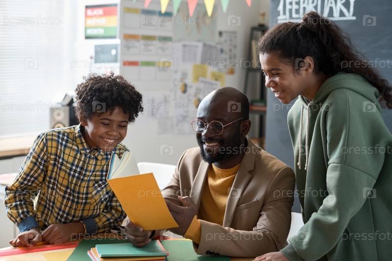Дети читают книгу с учителем