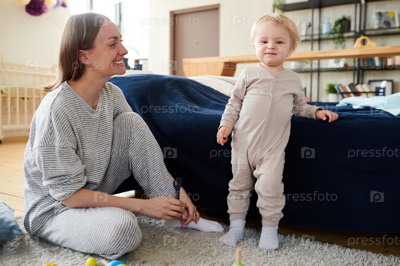 Милый ребенок играет с мамой
