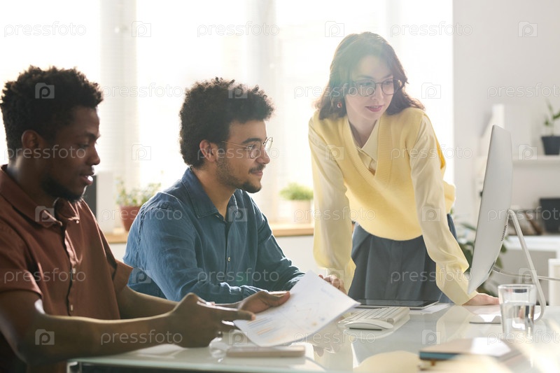 Коллеги по бизнесу, работающие с презентацией в офисе