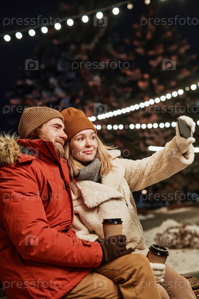 Молодая пара делает селфи на свежем воздухе
