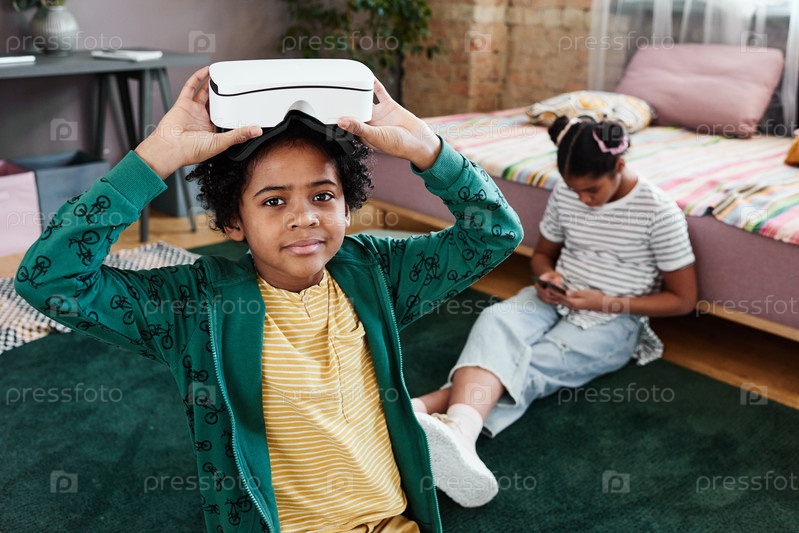 Мальчик играет в игру виртуальной реальности