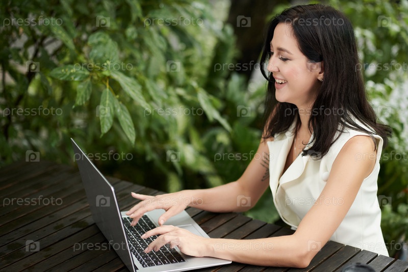 Элегантная деловая женщина, работающая на ноутбуке