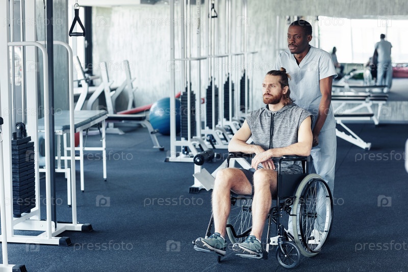 Врач с пациентом, идущим на спортивные упражнения