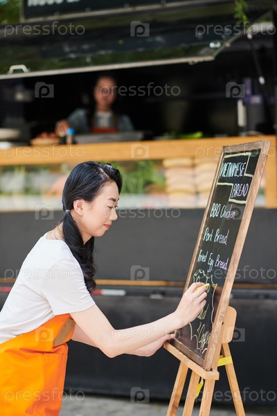 Рабочий пищевого грузовика Письменное меню