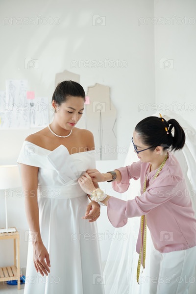 Швея, застегивающая лук на поясе