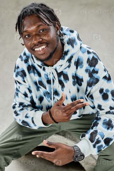 Вертикальный портрет молодого чернокожего мужчины в капюшоне