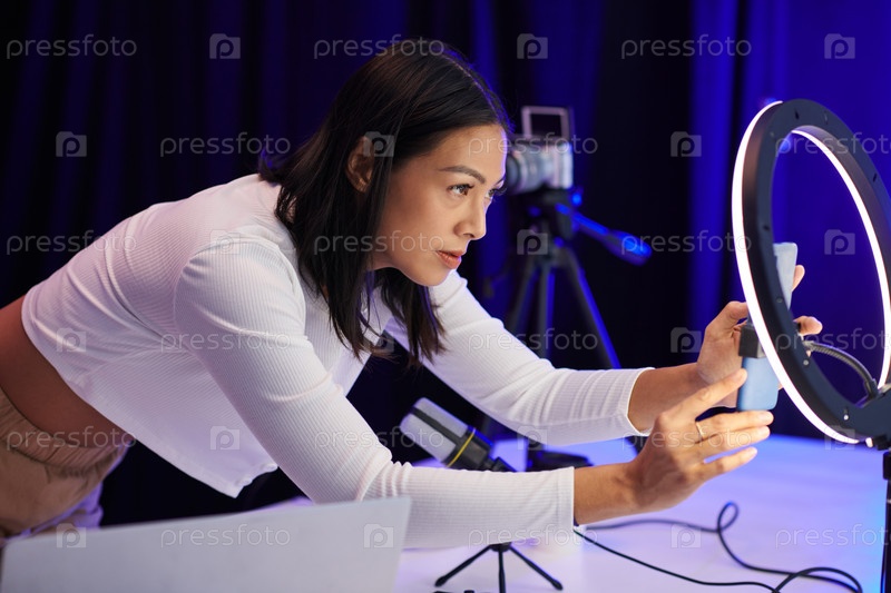 Blogger присоединяет смартфон к кольцевому свету