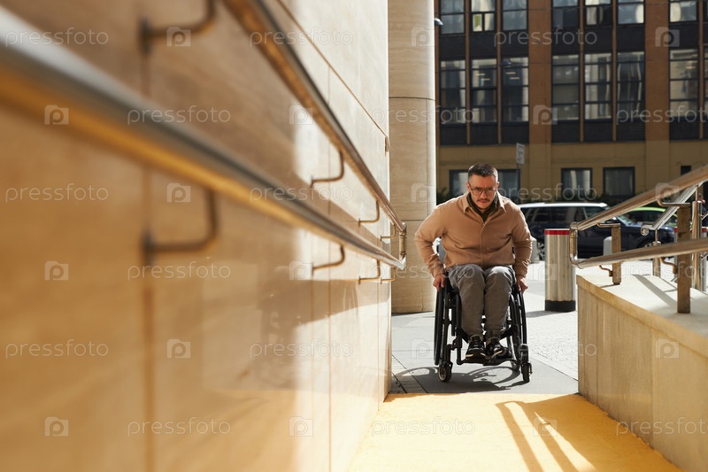 Мужчина использует рампу, чтобы подняться вверх