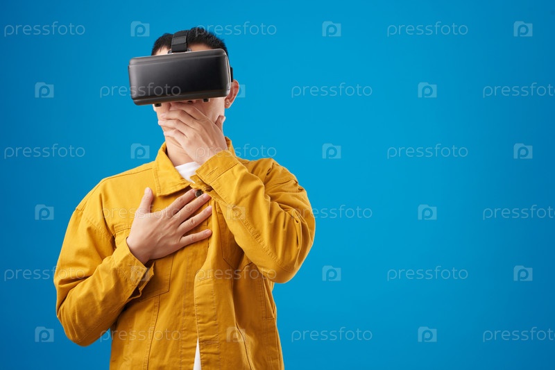 Испуганный человек в гарнитуре виртуальной реальности