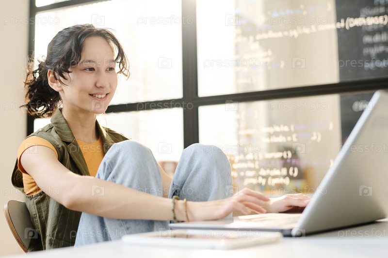 Студент, работающий на ноутбуке в классе