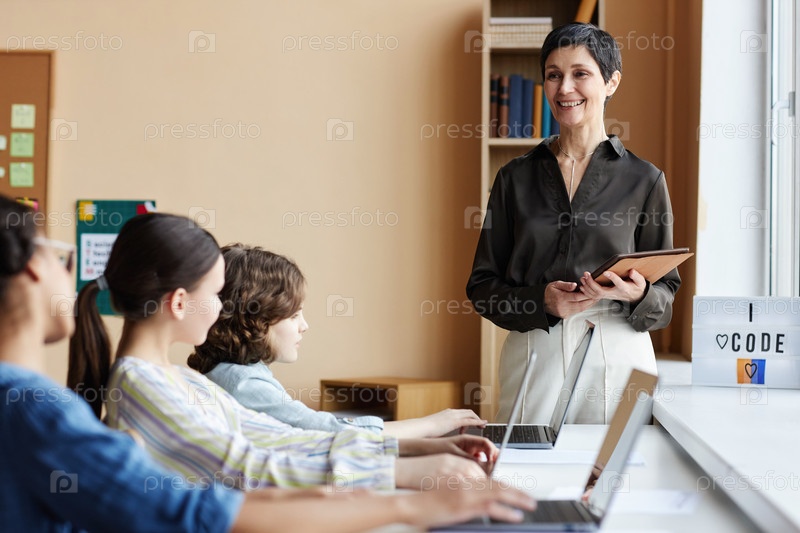 Учитель преподает ученикам в школе