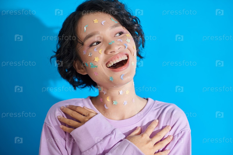Веселая девочка-подросток со стикерами на лице