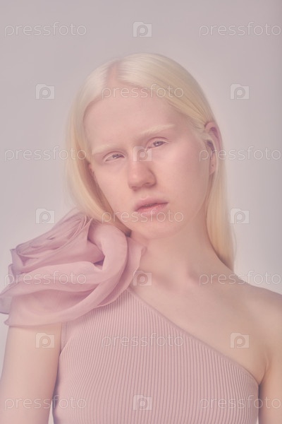Альбиноса молодая девушка в элегантном платье