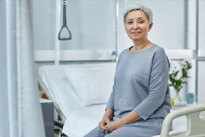 Пожилой пациент сидит в больничном отделении