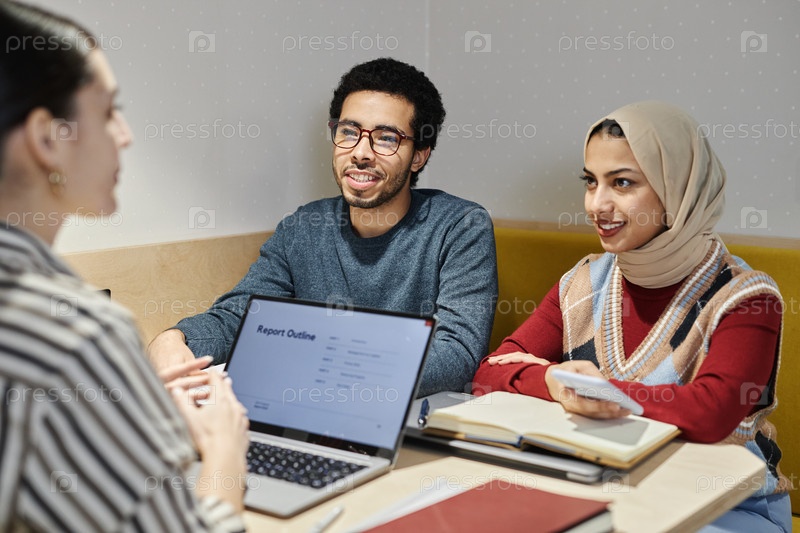 Группа улыбающихся арабских бизнесменов, собравшихся за столом в будке