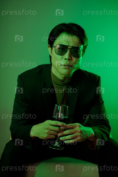 Нахмурившийся мужчина держит бокал вина
