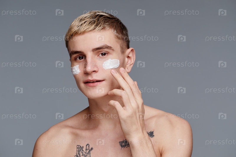 Молодой человек с минимальным кремом для лица