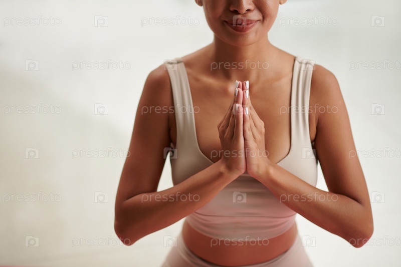 Женщина, держащая руки в намасте мудре
