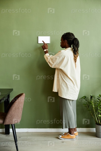 Американская женщина использует умный домашний панель Африканский