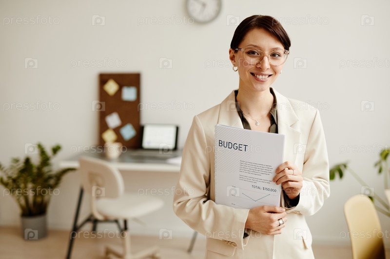 Женщина-предприниматель улыбается минимально