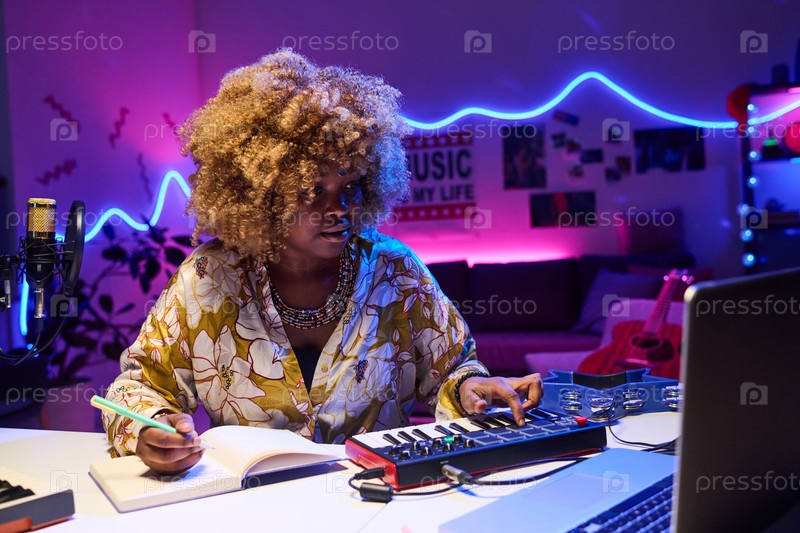 Молодая женщина, работающая над песней